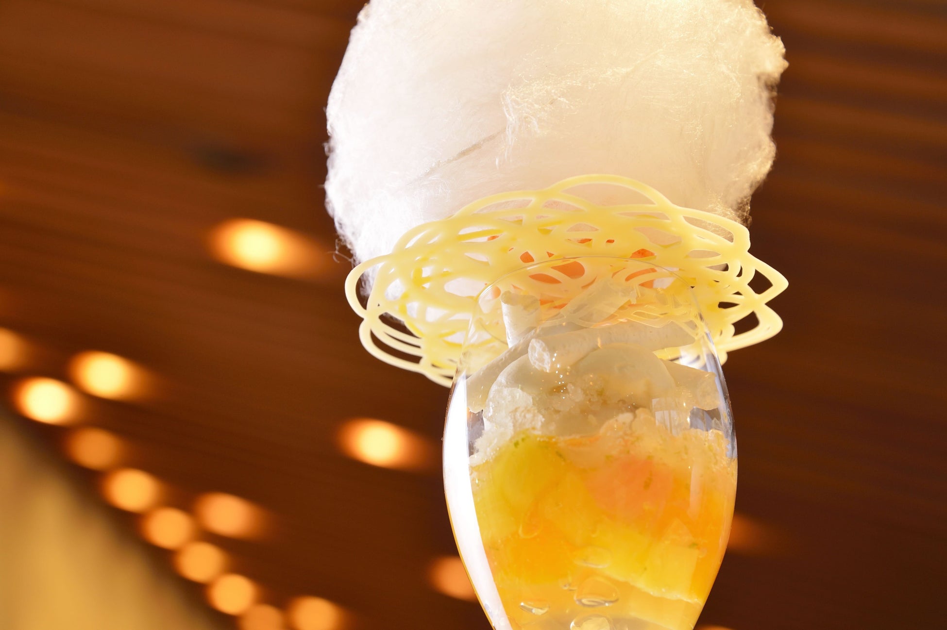 春の箱根を彩る『箱根スイーツコレクション 2024』、25回目の開催となる今回のテーマは「春を祝おう!パーティースイーツ♪」。エモアテラスでは期間中、ビタミンカラーが元気をくれるパルフェ「プランタン Allez! パルフェ」を毎日限定数ご提供します。トップを飾るわたあめを受けるのはお花型のホワイトチョコ。ココナッツメレンゲ、ライムのグラニテ、マンゴーやオレンジのコンポート、白ワインのジュレなどで構成された、シェフの遊び心満載の一品です。シャンパングラスを手に‶Allez!(乾杯)“しませんか?