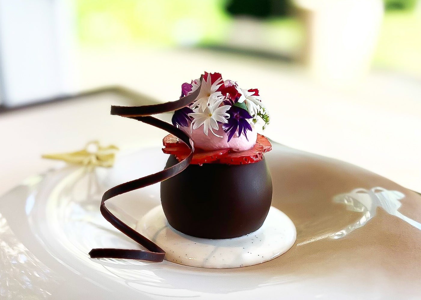 モダン・ダンスの祖とされる二人の舞踏家をイメージ。布をひらめかせて踊るロイ・フラーを表現したチョコレートに、イサドラ・ダンカンが好んだシャンパン香るソースをかけてお召し上がりください。